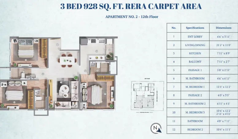 The 3 BHK residences, ranging from 928 sq.ft to 955 sq.ft, Starts at 5.59 Cr are where the project finds its real strength. The layouts are balanced, with well-proportioned living areas, functional kitchens, and properly sized bedrooms. The planning avoids unnecessary complexity, focusing instead on practical day-to-day usability.