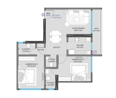 The 2 BHK apartments are designed to offer efficient layouts and comfortable living spaces. These homes feature spacious living and dining areas, well-planned kitchens, and private bedrooms that provide a balanced living environment for families.