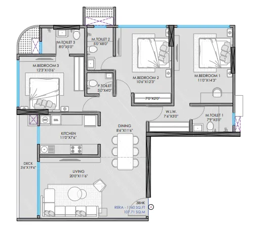 The 3 BHK residences are designed for families who require larger living spaces. These homes feature expansive living areas, dedicated dining spaces, and multiple bedrooms that provide both comfort and privacy.