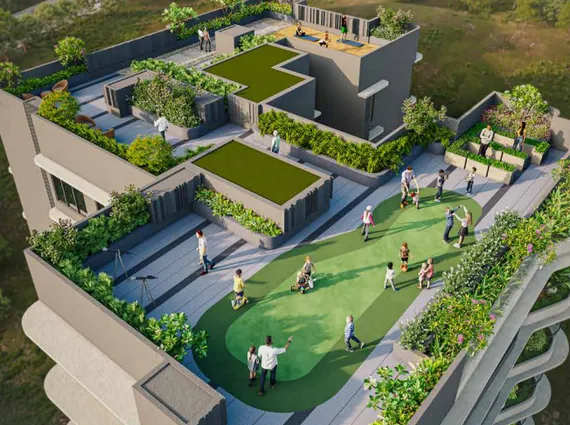 One of the defining features of the project is the integration of green landscaping and open spaces throughout the development. From lush plantation zones at the ground level to landscaped podium areas and terrace amenities, the design emphasises a strong connection between nature and urban living.